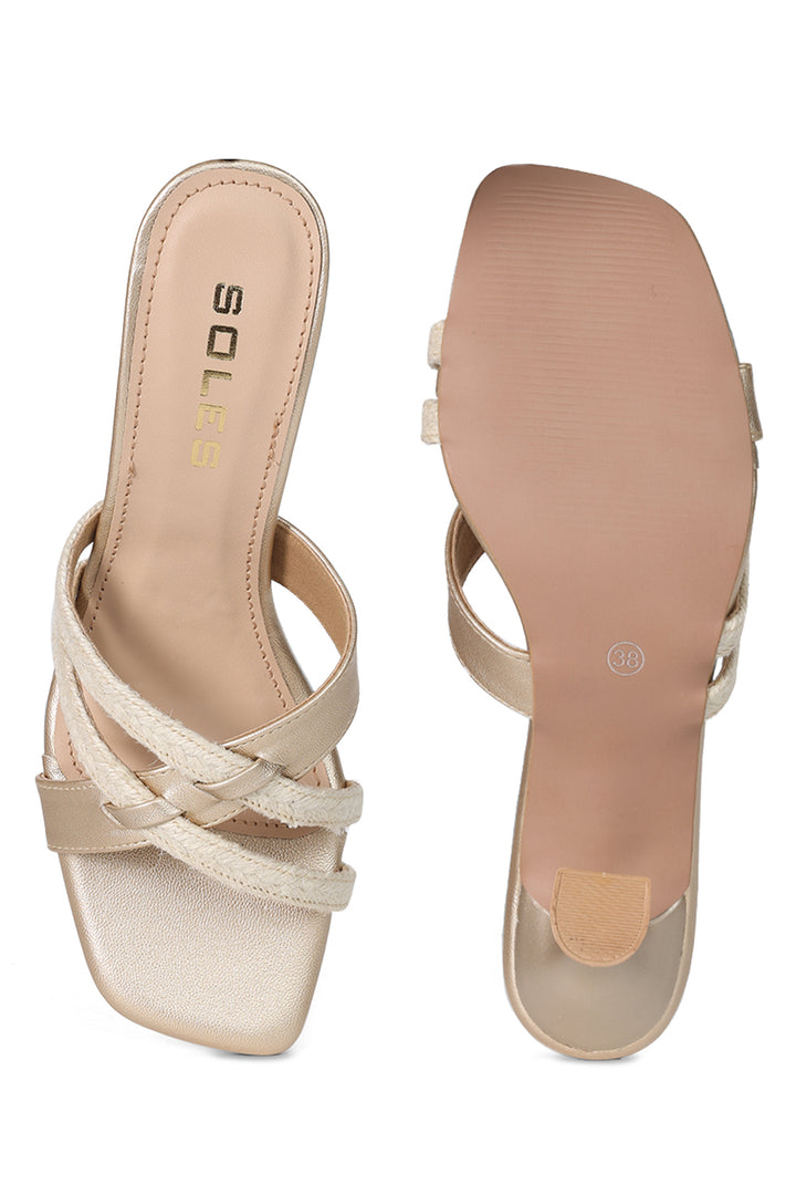 Sleek and sophisticated Strappy Heels with twin shimmering straps and a sturdy block heel, offering comfortable height and elegant style—perfect for elevating any formal or festive ensemble with effortless grace.